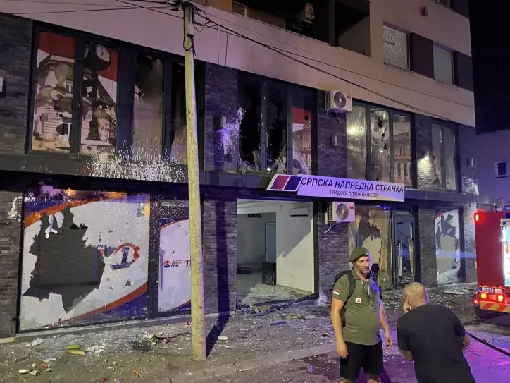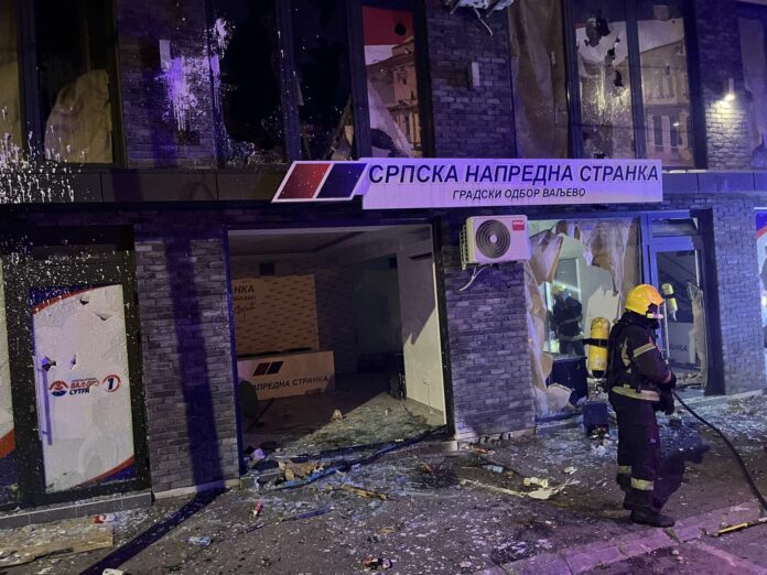 Kolona je zatim nastavila prema prostorijama Srpske napredne stranke, gde su, prema svedočenjima, maskirani mladići demolirali izloge i izazvali požar. Vatrogasci su ubrzo stigli, ali su i oni naišli na otpor grupe koja ih je pokušala sprečiti da gase požar.