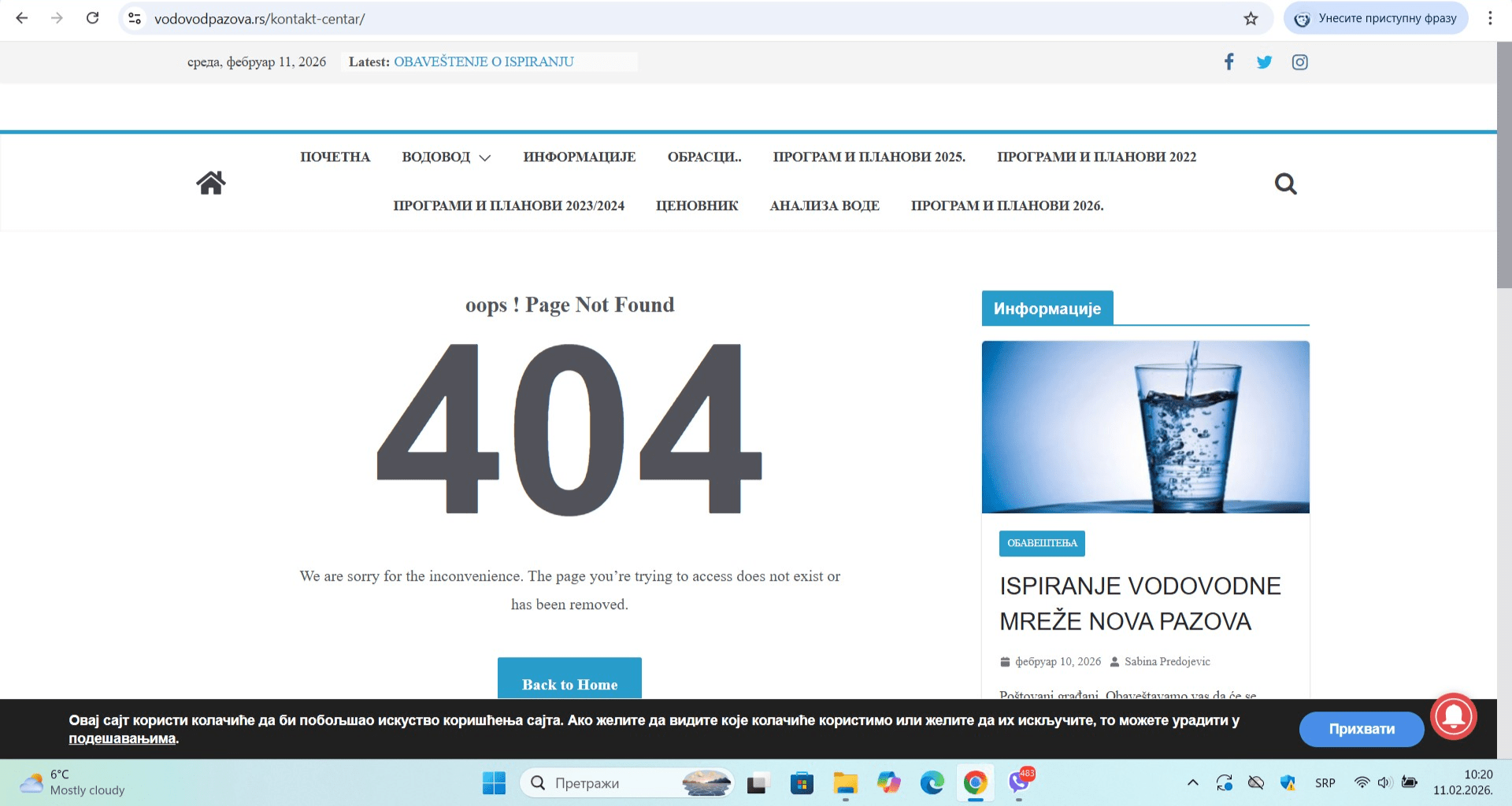 U digitalnom dobu, kada građani očekuju da račun plate klikom, a kvar prijave preko aplikacije, sajt JKP „Vodovod i kanalizacija“ Stara Pazova i dalje funkcioniše kao relikt prošlog vremena. Kontakt forma ne postoji, linkovi ne rade, a analize pijaće vode su neredovne i netransparentne, pa građani i dalje ne znaju kakvu vodu piju.