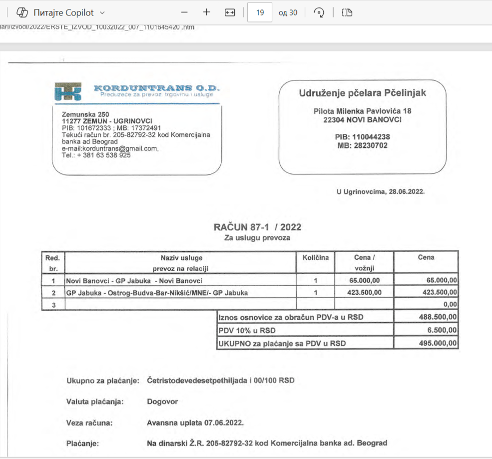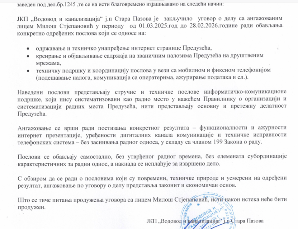 Udruženje pčelara „Pčelinjak“ iz Novih Banovaca osnovano je 16. maja 2017. godine, a kao njegov zastupnik vodi se Miloš Stjepanović iz Novih Banovaca. Stjepanović je takođe dugi niz godina zaposlen u Opštini Stara Pazova, a u periodu od 1. marta 2025. do 28. februara 2026. godine bio je angažovan i u JKP „Vodovod i kanalizacija“ Stara Pazova po ugovoru o delu, na poslovima održavanja sajta i društvenih mreža tog javnog preduzeća. Za taj angažman primao je mesečni honorar od 70.000 dinara, što znači da je tokom godinu dana od JKP po Ugovoru o delu dobio ukupno 840.000 dinara. O radu sajta ovog javnog preduzeća već smo pisali, navodeći da na njemu vlada gotovo potpuni digitalni mrak.