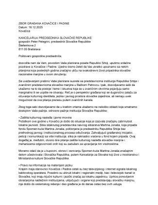 Otvorena pisma upućena su Kancelariji predsednika Slovačke Republike u Bratislavi, a građani očekuju odgovor i spremnost na lični susret tokom predstojeće posete.
