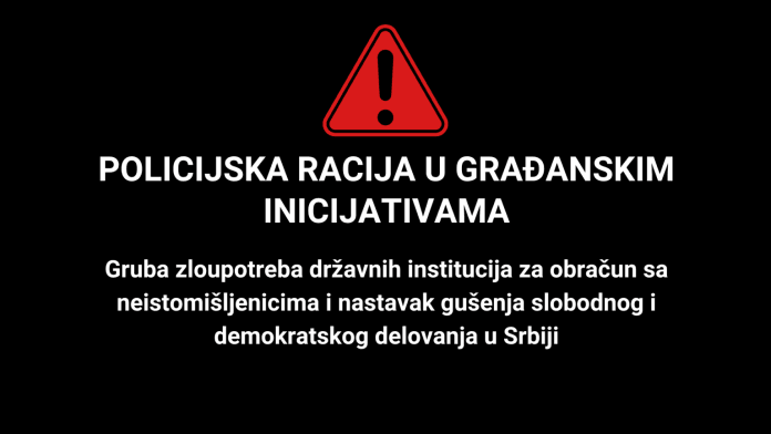 Građanske inicijative oštro osuđuju ovaj napad na organizacije civilnog društva i zahtevaju da nadležni organi odmah objasne osnov za ovakvu akciju i prestanu sa zloupotrebom institucija u političke svrhe.