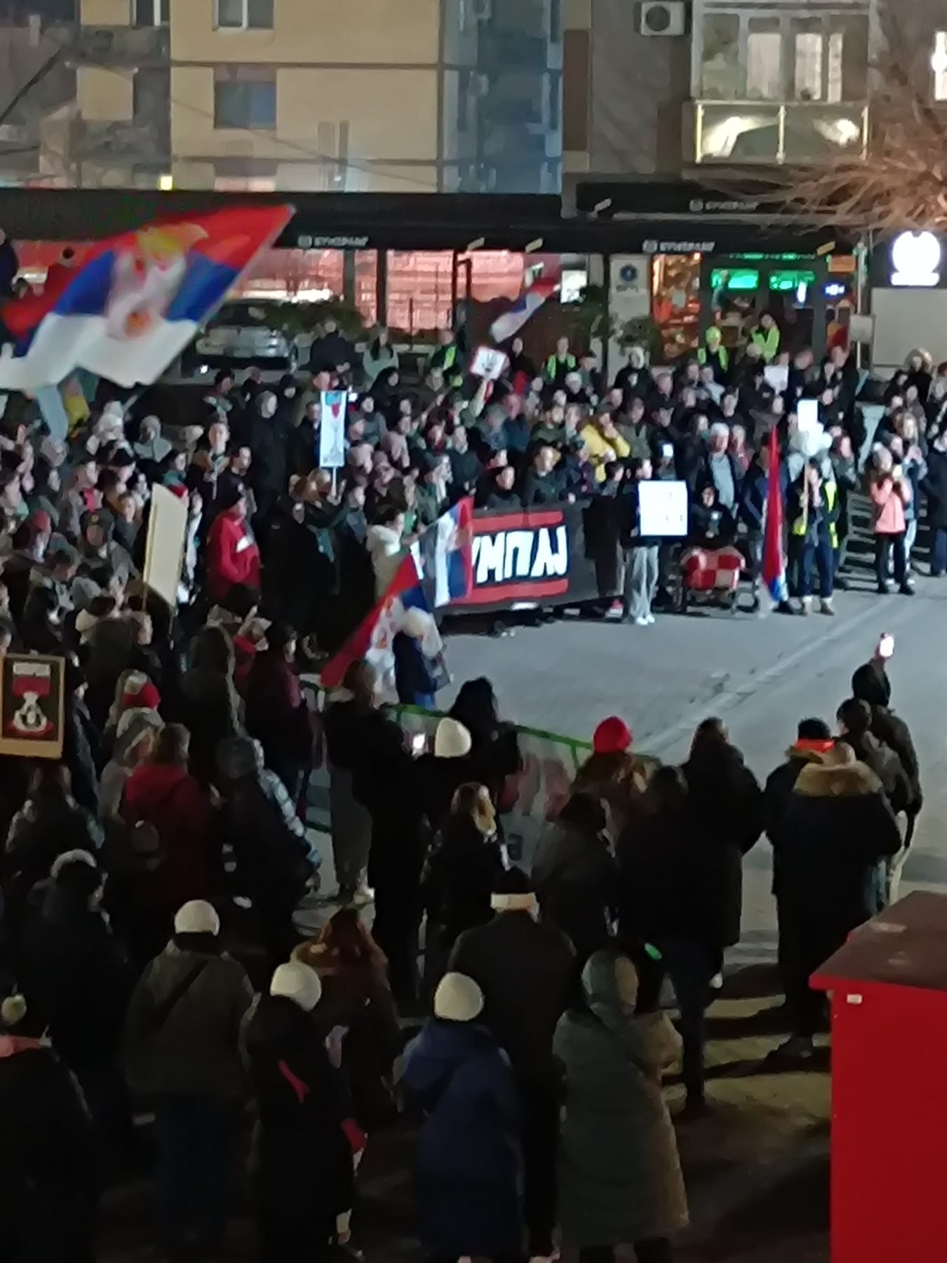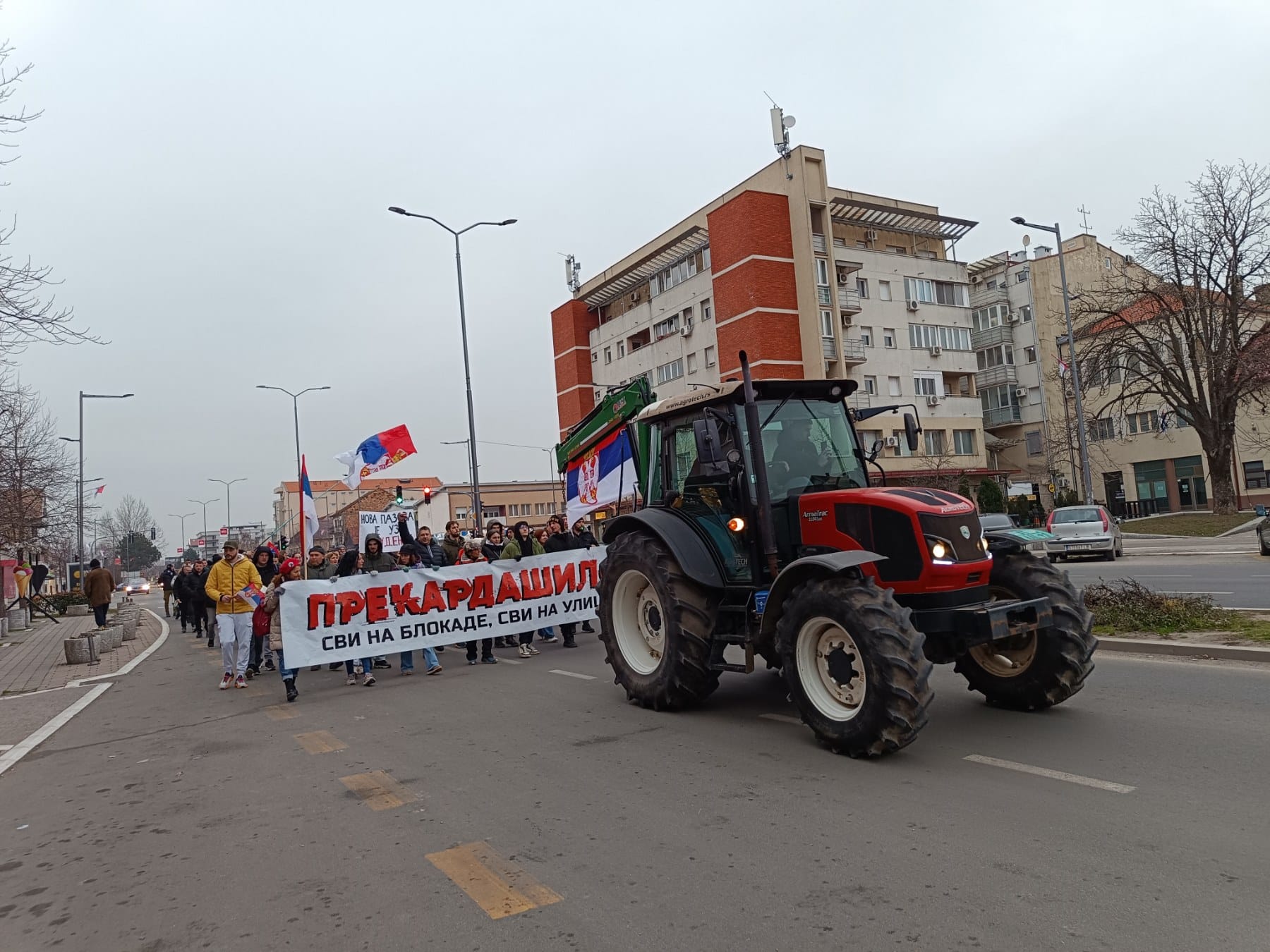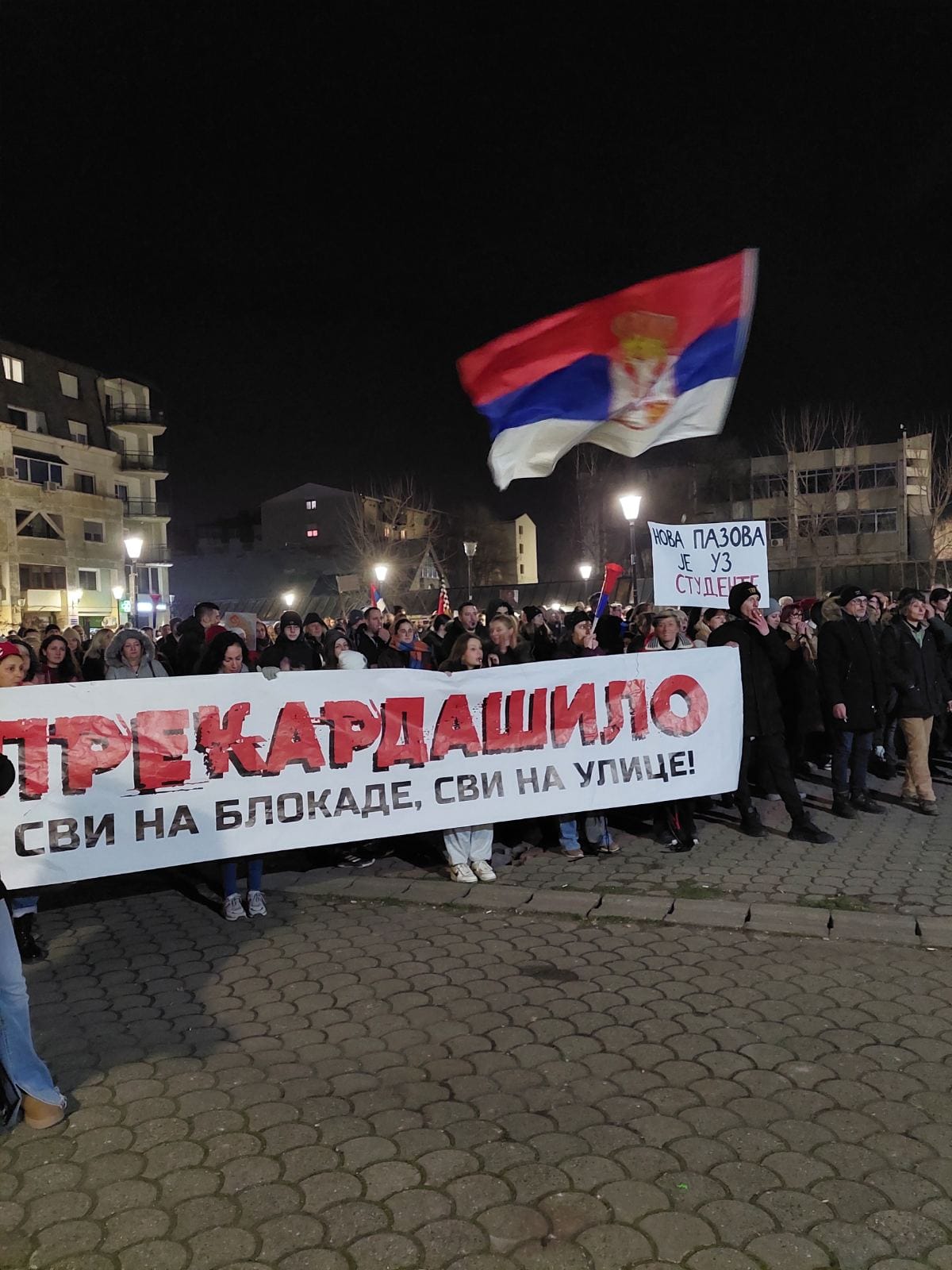 Građani Nove Pazove okupili su se ispred Osnovne škole „Rastko Nemanjić Sveti Sava“ i sa zastavama, transparentima i zvižducima krenuli prema Staroj Pazovi. Na drugoj strani, kolona iz Vojke pridružuje se kod restorana PUTNIK, a svi zajedno će formirati impozantnu masu koja će se spojiti sa okupljenima u Staroj Pazovi i poslati snažnu poruku zajedništva i odlučnosti.